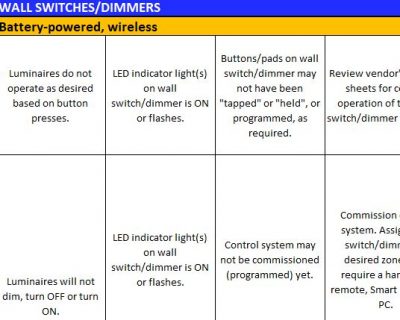 Last year, the Lighting Controls Association published the first version of a generic Troubleshooting Guide for Networked Lighting Control Systems. This guide is primarily meant to address issues that may arise with Networked Lighting Control (NLC) systems. There are plenty of things that differentiate one vendor’s NLC system from those made by other vendors. Different systems have different UIs (user interfaces), and a specific NLC system may or may not have exactly the same features or benefits as any other system. Having said that, enough similarities exist to have made the creation of this manufacturer-agnostic Troubleshooting Guide worthwhile.