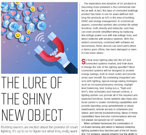 In this article, he identifies three key conversation points with clients: 1) the client’s operational goals beyond energy savings, 2) what other technologies the client is looking to incorporate into an overall building or IoT solution, and 3) the full capabilities of any selected lighting control system.
